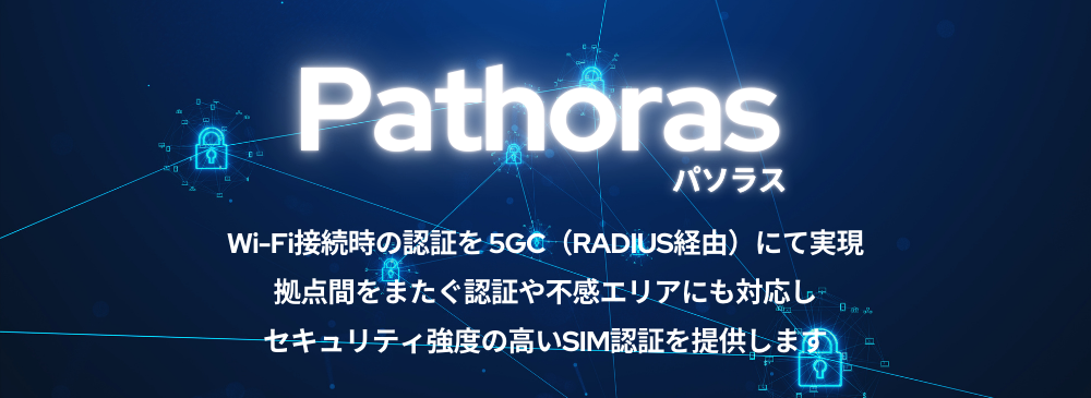 5GC連携RADIUS「Pathoras(パソラス)」は、5Gコアネットワークと連携しWi-Fi環境でSIM認証を実現するRADIUSサーバです。